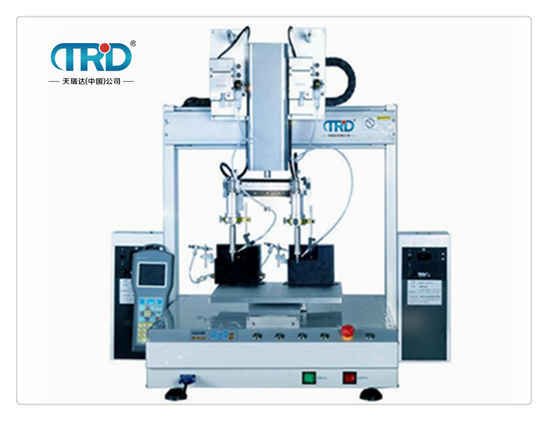 TH-4210雙頭自動焊錫機可對各種工件進行高速拖焊,點焊,斜線焊接等。解決了人工重復性焊接動作出現(xiàn)的焊點不均勻、虛焊等現(xiàn)象。我們的優(yōu)勢是焊點一致性好,品質穩(wěn)定。自動焊錫機操作簡單,生產效率高、焊接質量好、環(huán)保又節(jié)能、初學者也能達到熟練工人的焊接效果。本機采用簡易快速地輸入焊錫程序,其軟件并具有強大的編輯功能,可輕易、快速的完成程序教導。
